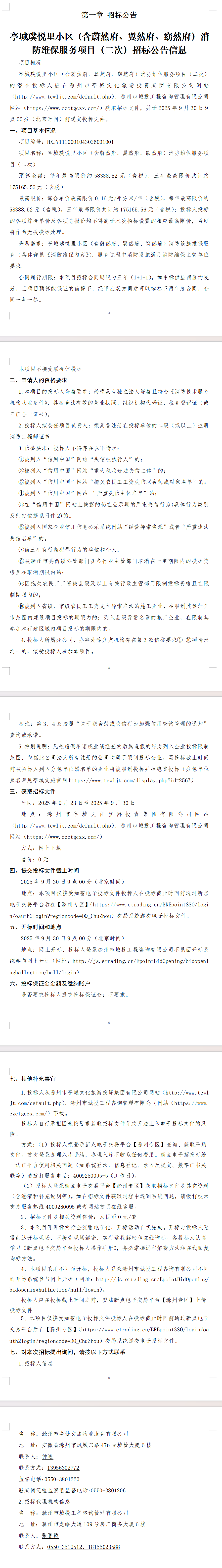 亭城璞悦里小区(含蔚然府、翼然府、窈然府)消防维保服务项目(二次)招标