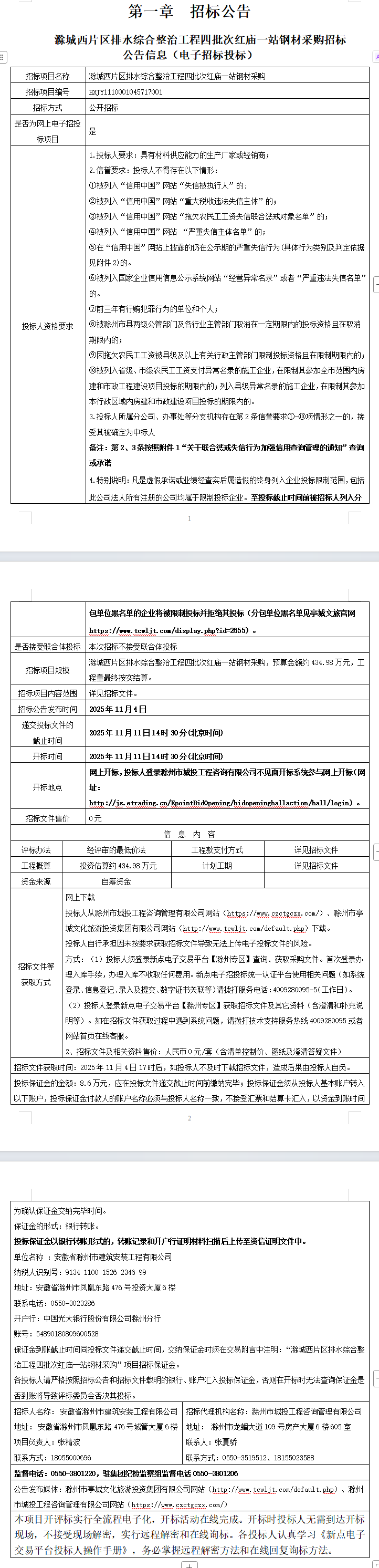 滁城西片区排水综合整治工程四批次红庙一站钢材采购