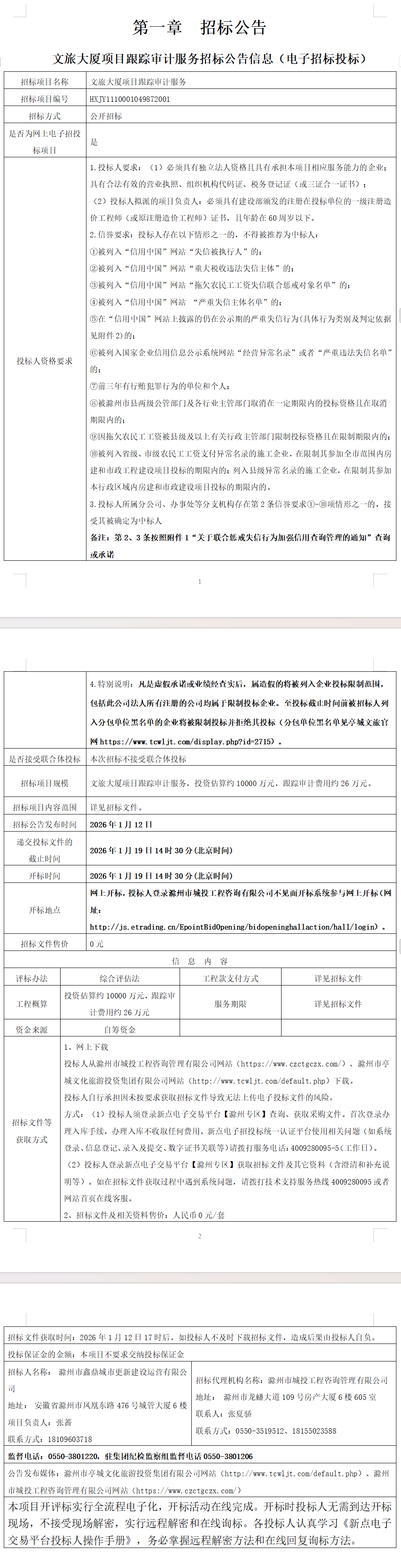 文旅大厦项目跟踪审计服务招标