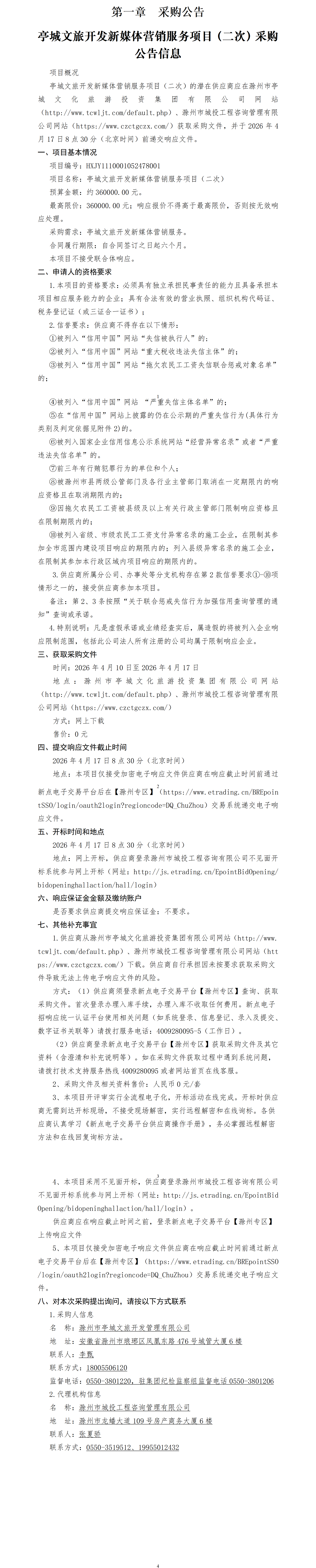 亭城文旅开发新媒体营销服务项目(二次)采购